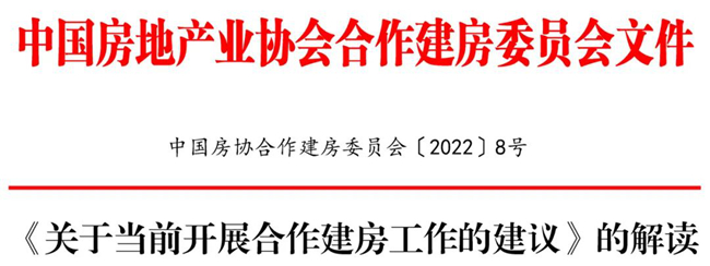 2022年6月2日,中国房地产业协会发布《关于当前开展合作建房工作的建议》(中国房协〔2022〕67号),旨在有序推进合作建房的工作,对地方房协和会员企业积极参与和开展合作建房的工作提出建议。为方便各地,各单位合理有序推动相关工作,合作建房委员会秘书处联合会员单位对文件精神进行如下解读。
